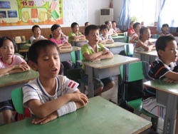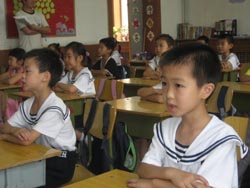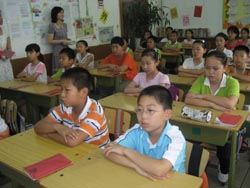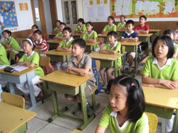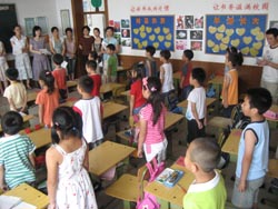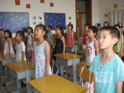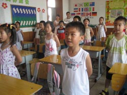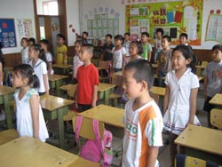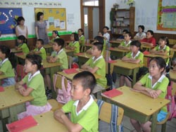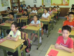 以下照片是学期末小学部组织教师观看各班级古诗文诵读汇报的情景。