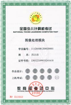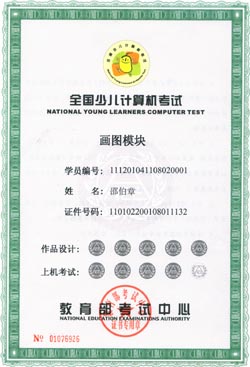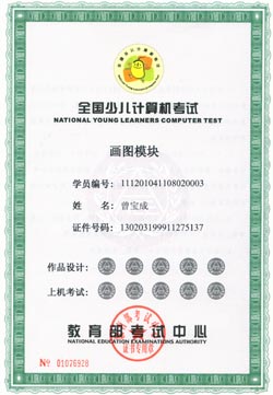 我校从2003年开始一直参加全国少儿计算机考试。在今年六月份举行的全国少儿NIT考试中,我校7名学生参加三个模块的考试,优秀率100%。曾宝成同学的画图模块获得满星的好成绩。