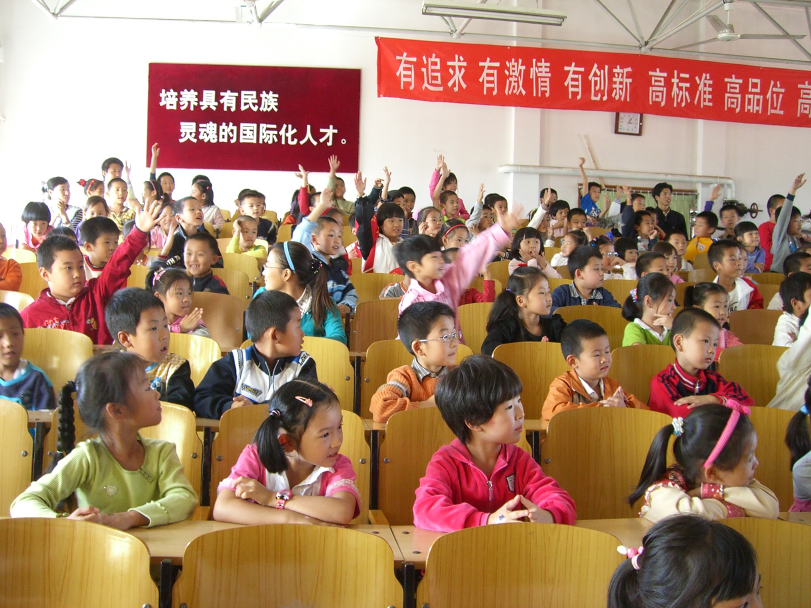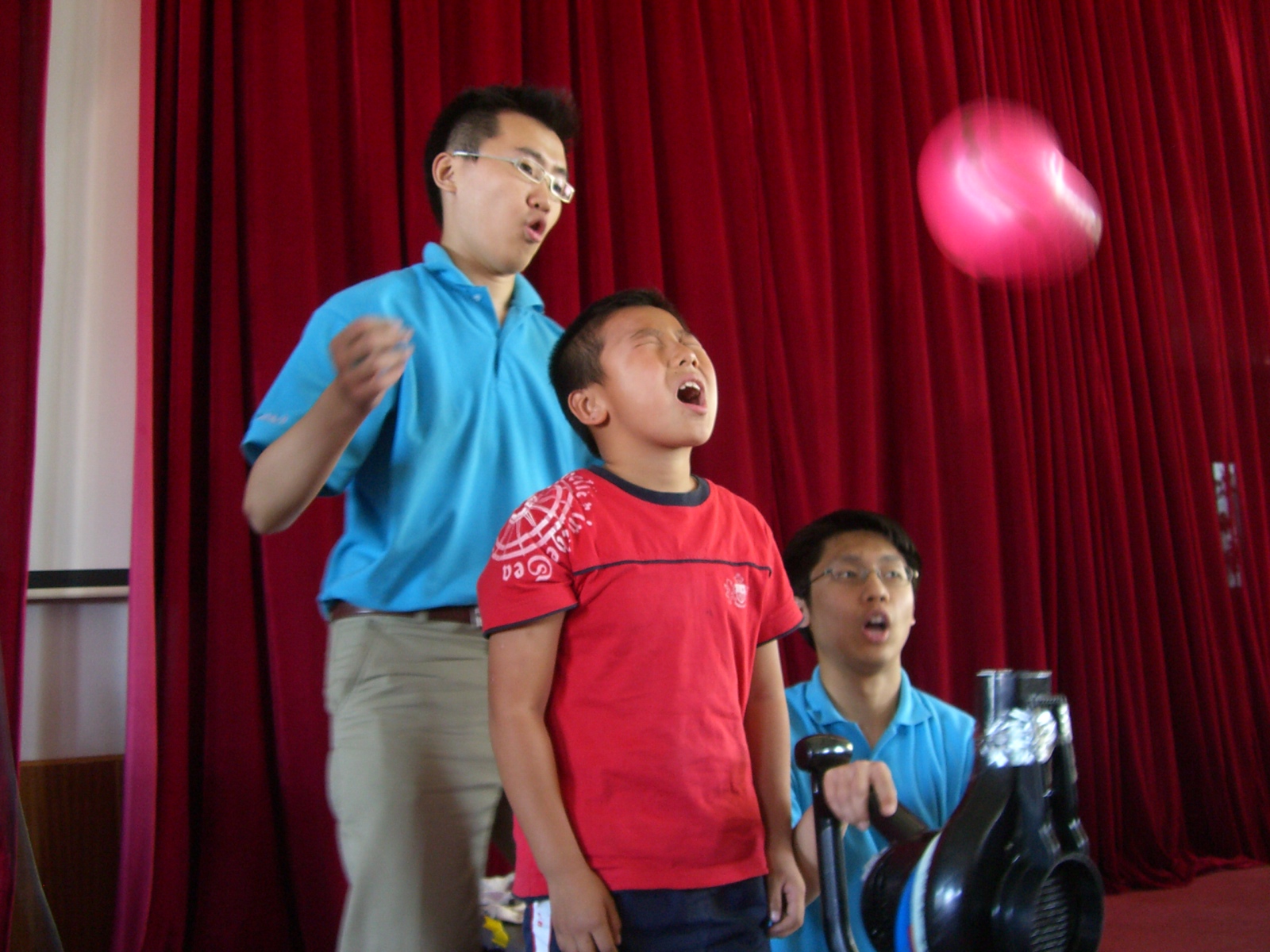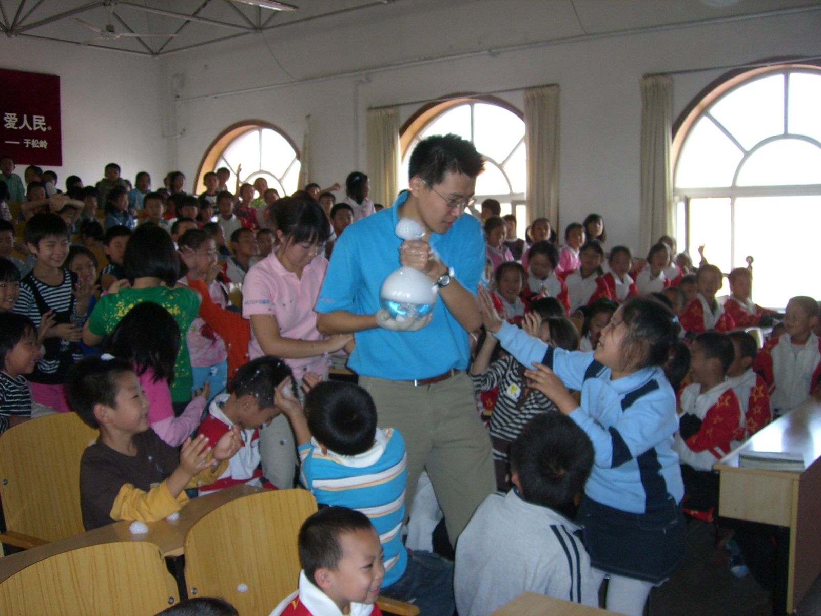 9月27日下午,五楼阶梯教室中不断传出孩子们阵阵的笑声和欢呼声。这是怎么回事呢?原来是“疯狂家族”的老师们在给1—3年的孩子们上科技展示课。这是一个很神奇的课堂,孩子们的小眼睛随着老师的展示闪烁出渴望知识的光芒;这是一个很特殊的课堂,没有严肃的板书,没有枯燥的讲解,一个个奇妙的科学现象,一位位风趣、幽默的授课教师,深深地吸引了在场所有的同学们。