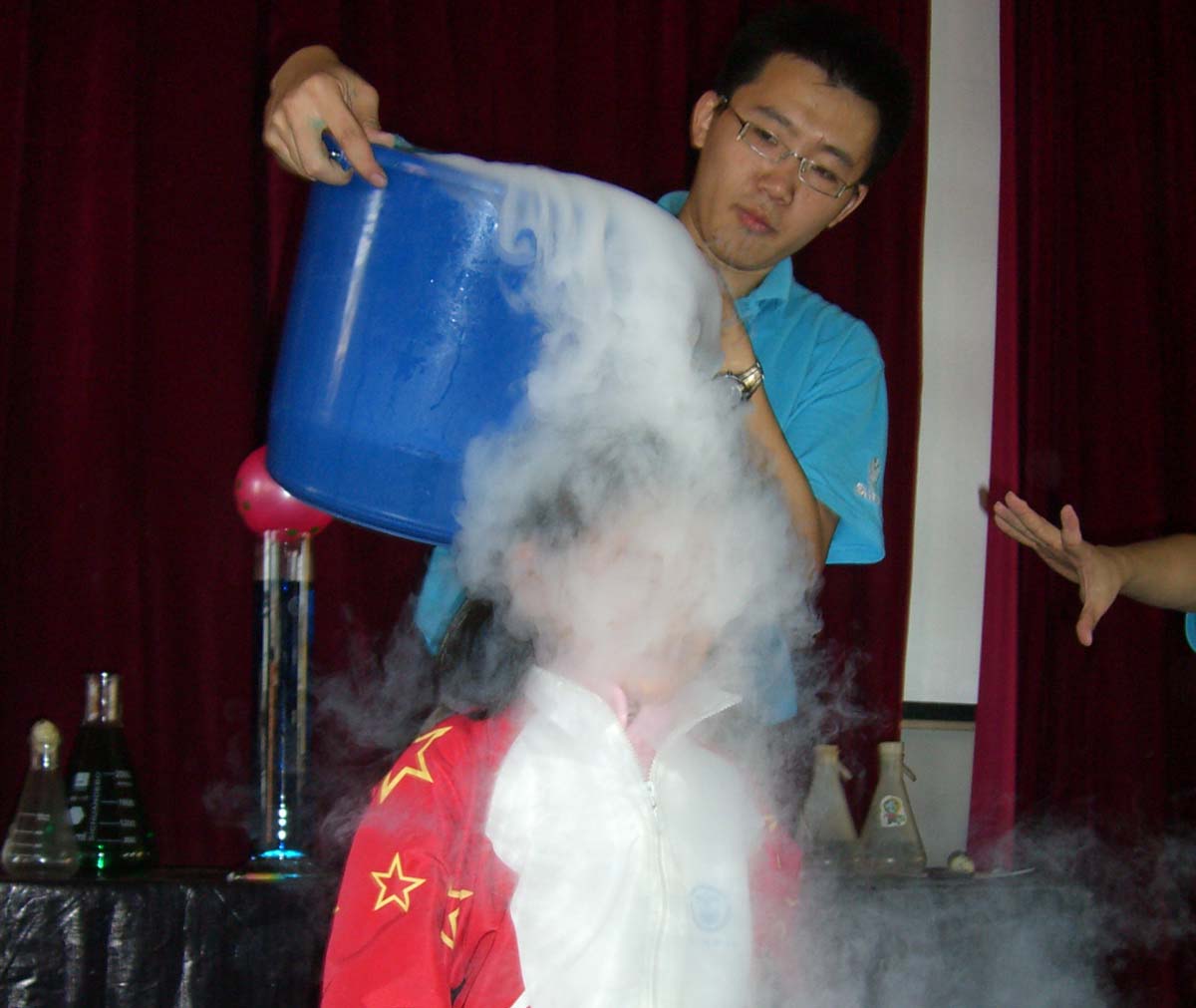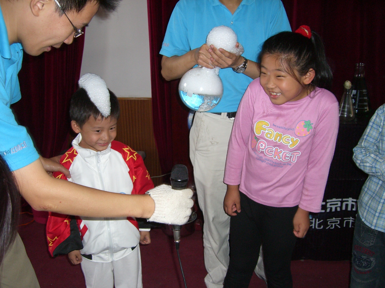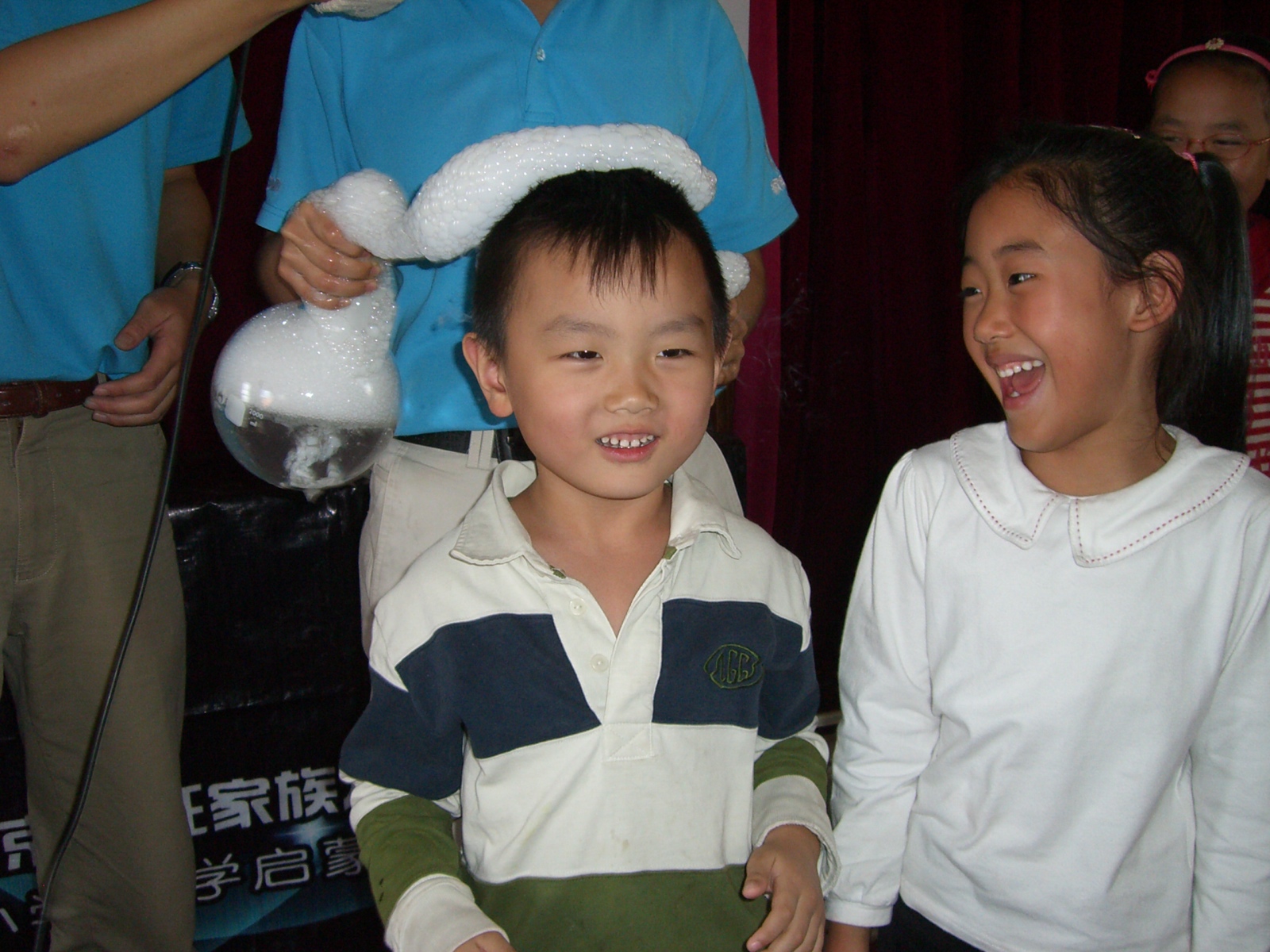 “气压,干冰,表面张力”这些很难理解的科学专用词语在老师的手中生动的展示出来,经过老师形象的讲解,孩子们弄懂得了好几个科学道理,并对科学产生了浓厚的兴趣。