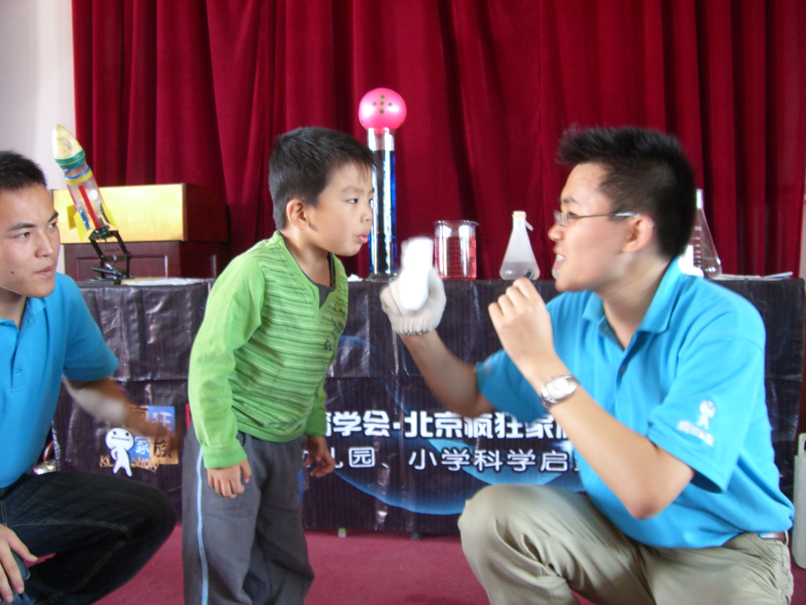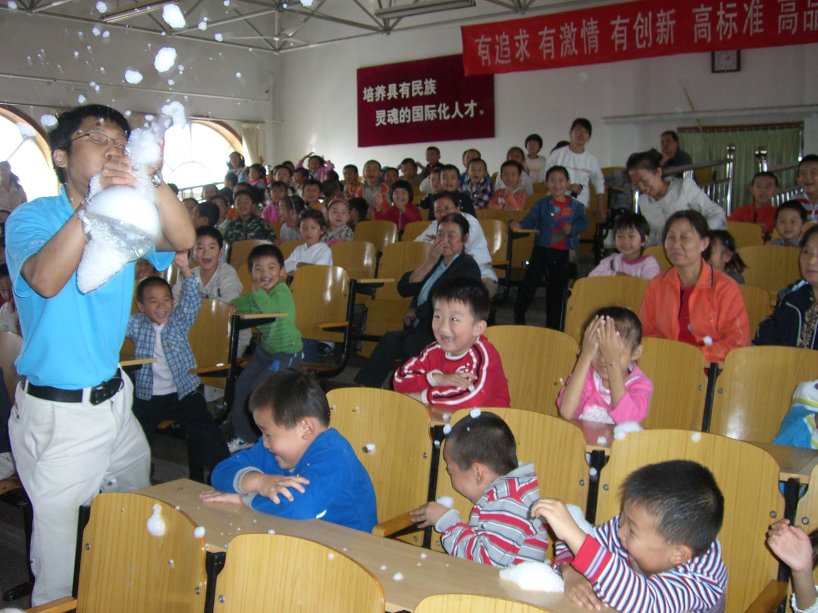 观摩科技展示课的不仅有1—3年级的小同学,还有学前班的小豆豆们,别看他们年纪小,可是他们对科学研究的热情还真是很高。小脸仰着,眼睛瞪的大大的,老师口中重复的每一个重要的科学用语他们都很认真的跟读着。老师提问:魔术和科学有什么不同?有一个小家伙竟然能很直截了当的说出:“魔术是假的,科学现象却是真的。”让主讲老师们刮目相看。