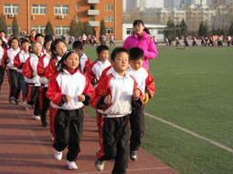 本学期我校按照教育部、国家体育总局、共青团中央的通知要求,将冬季长跑每天的距离参考基数定为1000米。学校领导非常重视长跑工作,上周末学校德育处在广播中开始了长跑的启动仪式,为了能够达到一定的锻炼效果,并且能够使孩子们逐渐适应长跑的力度,学校又安排了循序渐进的长跑方案。