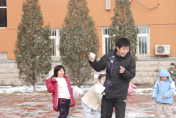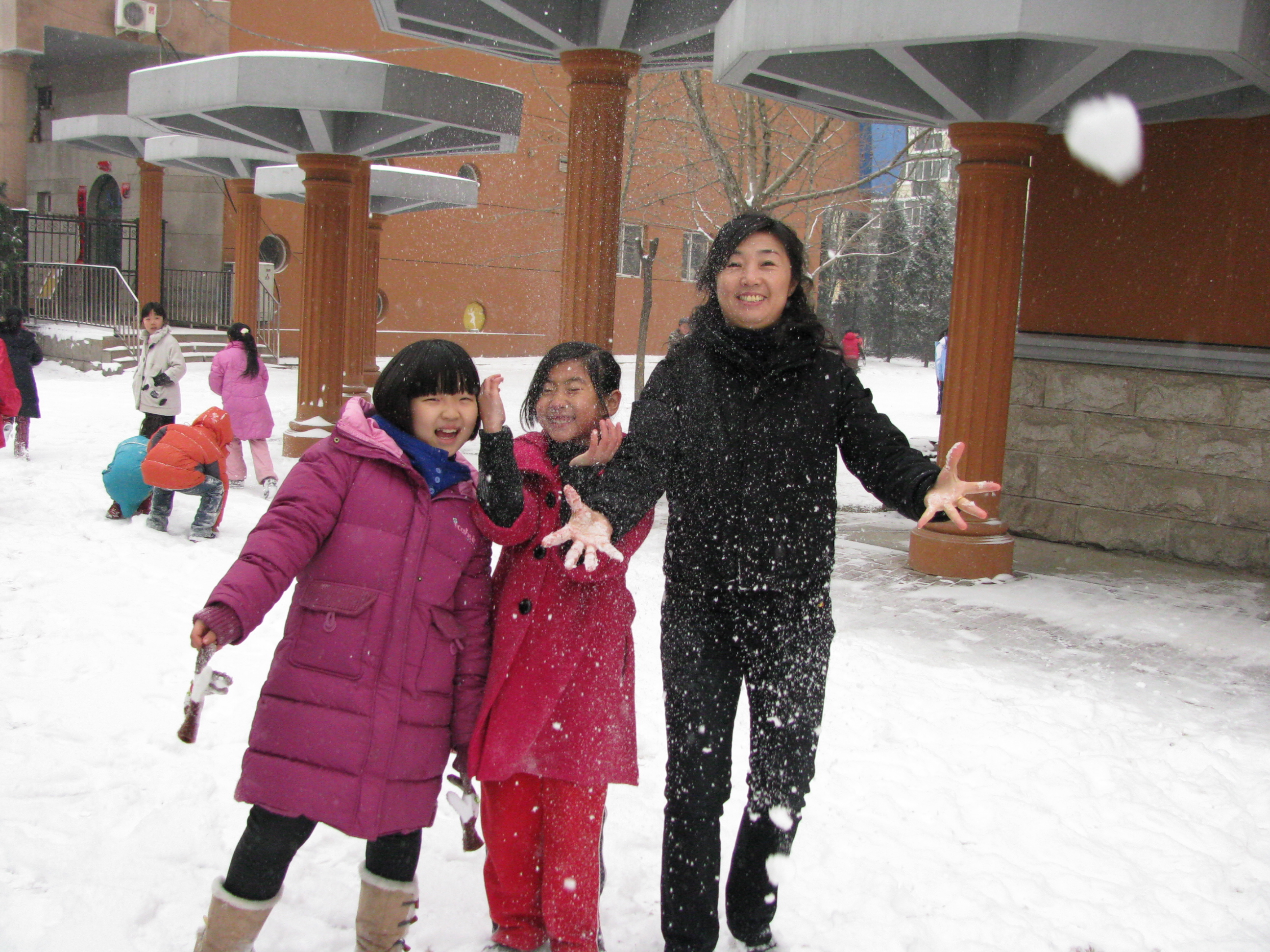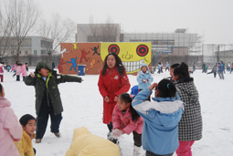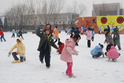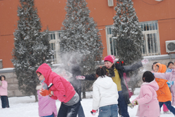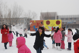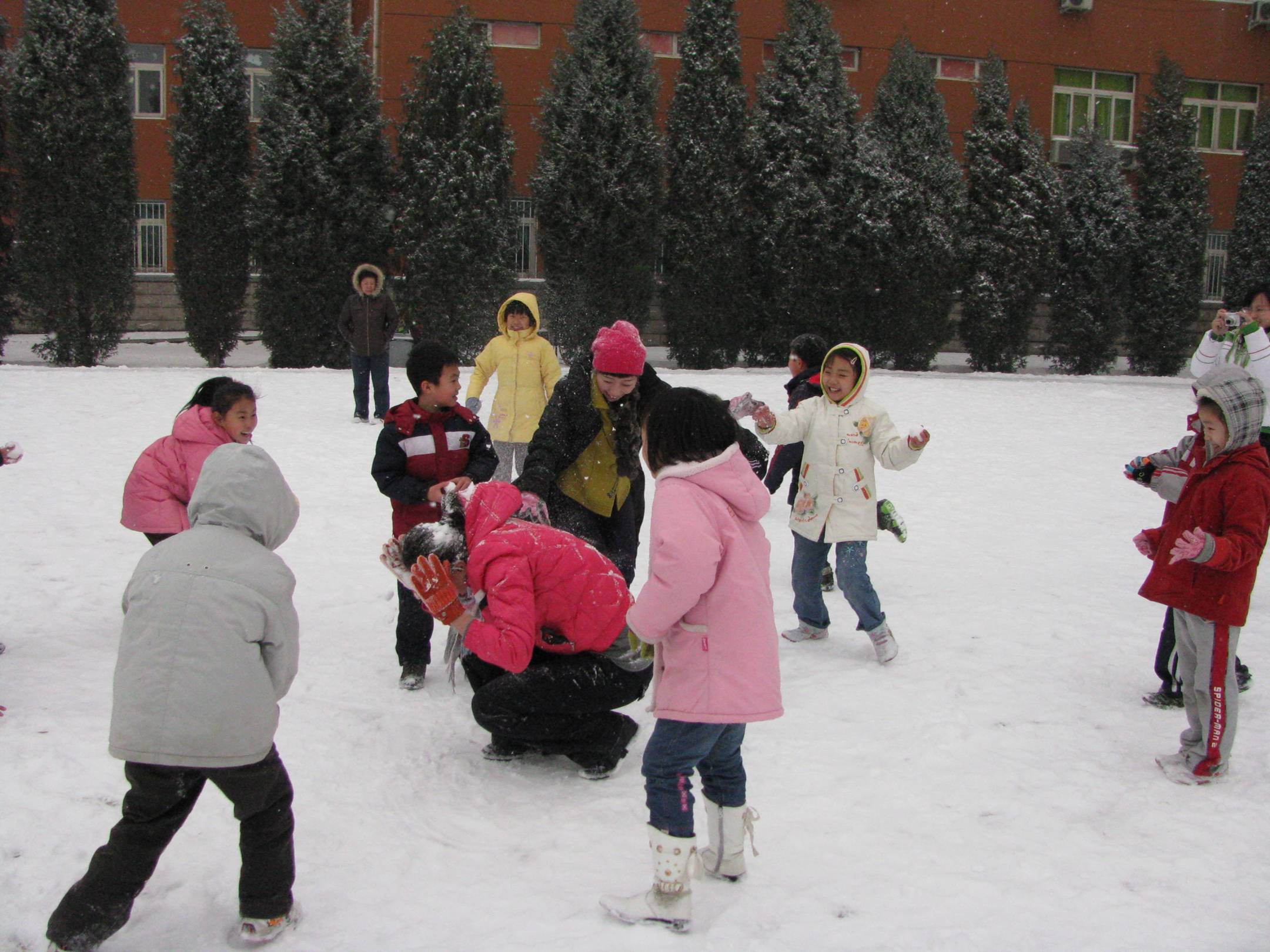 老师和孩子一起堆雪人,打雪仗,快乐、和谐的场面随处可见。瞧!这儿多了一个小雪人,看!那儿多了一群“雪孩子”。雪团儿在空中划出一个个漂亮的弧线,落在身上,落在雪地上,落在孩子们快乐的童年里……