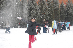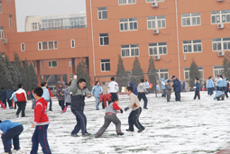 “下课啦!打雪仗去喽!”随着下课铃声的响起,操场瞬间沸腾起来。北京难得一见的大雪给孩子们创造了一个银装素裹的快乐“阳光三十分”。操场上,孩子们尽情的追逐玩耍,雪花漫天,孩子的欢笑声划破长空。
