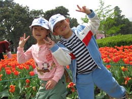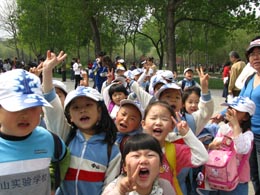北京植物园,花美,树茂,草绿。孩子们的笑脸更美。
