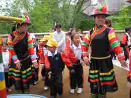 这是孩子们最盼望的一年一度的春游活动。今年的春游地点是“中华民族园”。平时在书本上,孩子们知道了很多少数民族的名字,简单了解了一些少数民族的风俗习惯。这次活动可算是让他们有了更立体、更真实的感受:蒙古族的蒙古包、藏族的哈达、朝鲜族最喜爱的荡秋千活动、满族的宫殿、佤族的舞蹈、傣族的泼水节……一座座美丽的少数民族村寨,一位位美丽的少数民族姑娘,一件件漂亮的民族服饰吸引了所有孩子的眼球。每个年组一个导游,细致的向孩子们做介绍。在温暖的春风中,孩子们不仅领略了大自然的美丽景色,更通过游览了解了很多少数民族的风俗习惯。增长了见识,开阔了眼界。