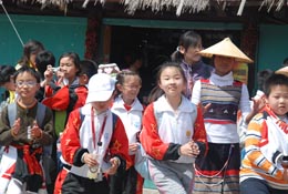 “同学们,现在我们参观的是藏族展馆,大家可以从这些建筑中领略到藏族人们的生活……”导游津津有味的讲解吸引了孩子们的注意力。