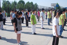 在5.12四川特大地震一周年之际,全校师生举行悼念仪式——肃穆静立,默哀一分钟。深切悼念在5.12特大地震中遇难的我们的同胞。