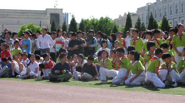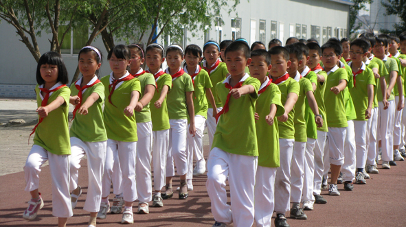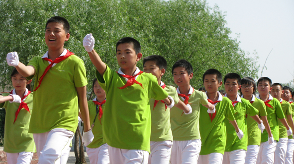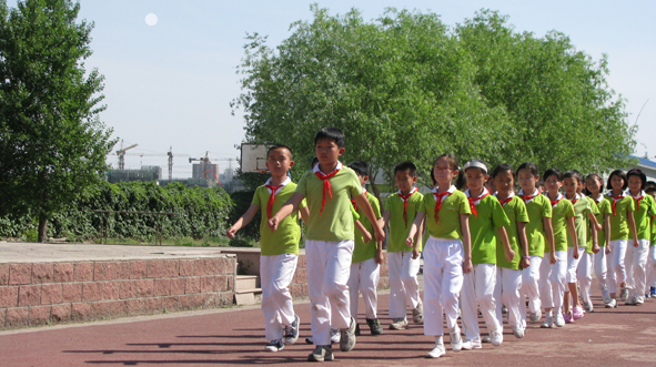 “准备好了吗?时刻准备着!我们都是共产儿童团……”伴着《共产儿童团》的歌声,踏着整齐的步伐,体育节第二轮比赛——列队比赛开始了。