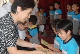 毕业在即,但孩子们早已在中山这片沃土留下了每一个成长的足迹,邱校长亲自为每个孩子送上毕业证书,还为22名在中山只生活和学习十多天的孩子送上精美的贺卡和礼物,真诚的祝愿“可爱的中山娃们”永远健康、快乐!