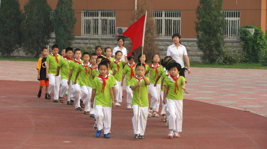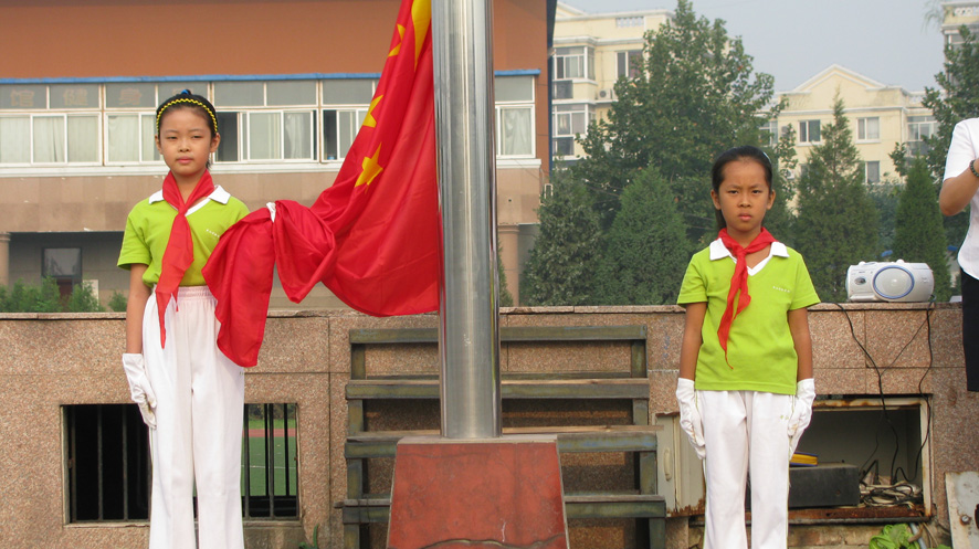 今年的新学期恰逢建国六十年大庆,全校师生也在第一个集会上升起了庄严的五星红旗。两名升旗手是上学期获得金卡的优秀中山娃,孩子们在这次开学典礼上有了自己学习的榜样,树立了新学期奋斗的目标。