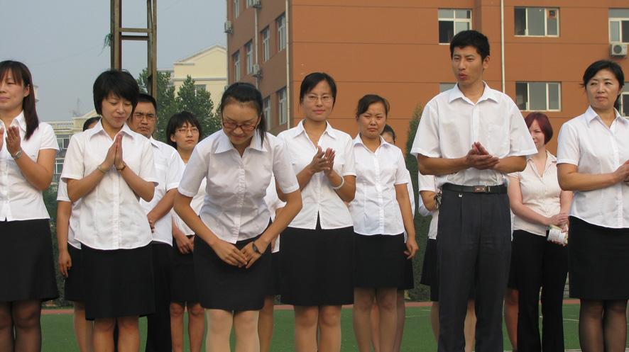 典礼上,所有老师与同学们见面的环节最为生动,当所有任课的老师站在台上逐一向孩子们介绍的时侯,当老师们挥动右手并鞠躬问好的时候,孩子们的小眼睛中闪动出激动的目光。