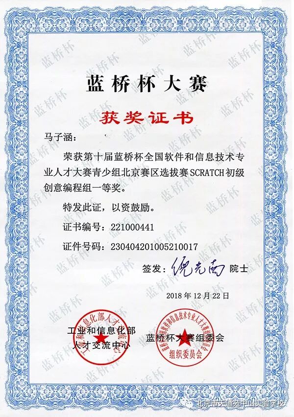 这是中山实验学校第一次参加蓝桥杯全国软件和信息技术专业人才大赛。最终13名学生分别荣获【第十届蓝桥杯全国软件和信息技术专业人才大赛青少组北京赛区选拔赛SCRATCH初级创意编程组和高级创意编程组】一、二、三等奖。祝贺获奖的孩子们!