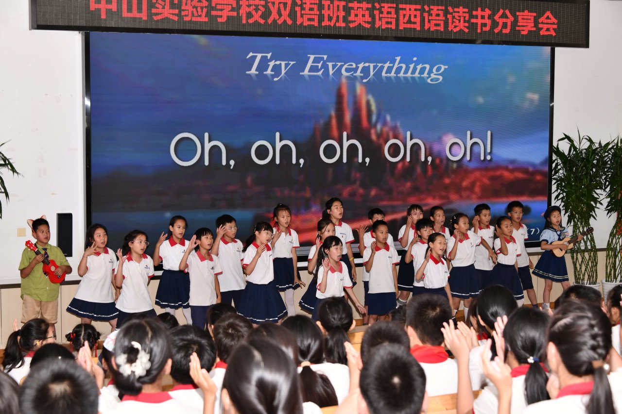 中山学子化身“文化小使者”,自信绽放!二年级小女孩再现哪吒“我命由我不由天”的勇敢;我们在“飞流直下三千尺,疑似银河落九天”的演讲中重温李白的豪迈;在舞台剧“年兽的传说”中惊叹孩子们精彩的表演力与优美自然纯正的英语之美;动感活力的“Try Everything” 呼吁我们要在黑暗中找到勇气的光;初三年级即将毕业的大哥哥携手五年级的女孩一起演绎Good Time,诠释自己对中山九年美好时光的眷恋与不舍;初一女孩的Stronger 嗨翻全场,带给我们越挫越勇的力量……无论是故事,演讲,舞台剧还是歌曲,都彰显中山学子未来自信对话世界的力量。