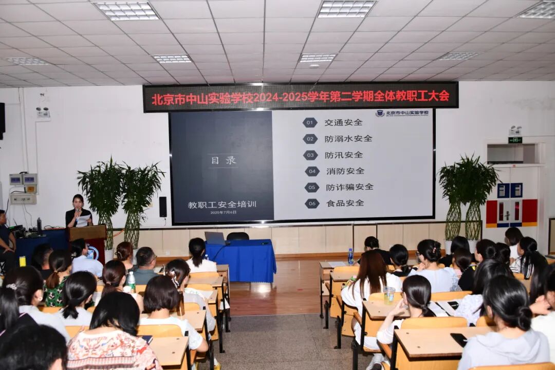 此次大会王副校长就假期安全及下学期各年级、各学科的专任教师岗位安排情况进行了详细说明,为新学期教育教学工作的顺利开展提供了师资保障。陈主任围绕新学期教学工作的核心任务、重点教研活动安排、教学常规要求以及质量提升策略等方面进行了具体布置,为全体教师明确了教学工作的方向与重点。初中部侯主任解读了初三年级中招政策,部署了中考志愿填报工作,安排了初一年级新生家访工作,并对暑假期间教师备课、参加教材培训提出明确要求。张副校长就暑期安全问题作出提示,希望全体老师牢记 “快乐过暑假,安全不放假”,共同守护平安假期。