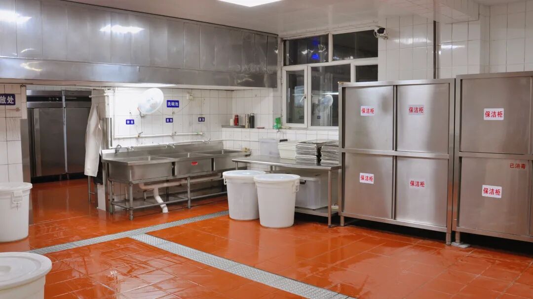 食堂的改造更是全方位提升:老旧的灶台全部更新,消除了安全隐患,也让出餐更加高效;各操作间加装了空调和照明,改善了工作环境;全面更换防滑地砖,确保行走安全;还升级了消毒设备,让餐具清洁更有保障。这些改变不仅让食堂环境更加整洁美观,更重要的是为师生的用餐安全筑起了坚实防线。