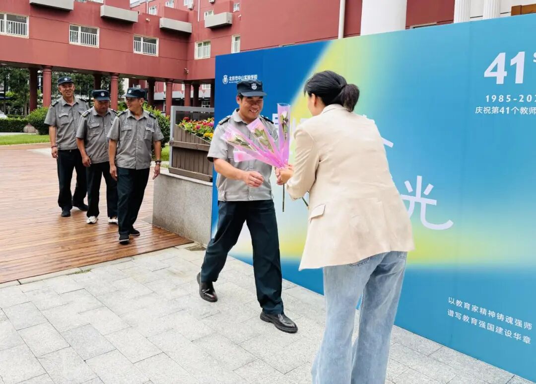 “辛苦了,教师节快乐!” 清晨第一声温暖的祝福和第一朵美丽的鲜花,都来自李辉校长。
