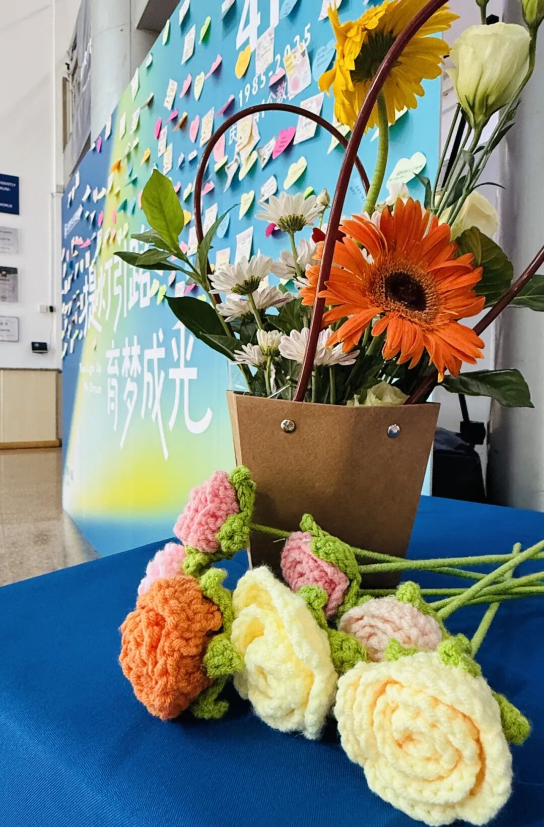 为了让老师们第一时间收到节日的祝福,活动筹备组工作人员早早到校布置活动现场并期待着老师们的到来。