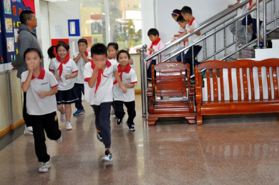 随着刺耳的警报声划破校园宁静,上午10时整,消防演练正式拉开帷幕。全校迅速进入“战时”状态,各班级犹如训练有素的“作战单元”,即刻响应行动。学生们紧捂口鼻,猫着腰排成整齐纵队,迈着轻快而坚定的步伐撤离教室。短短2分30秒,全校师生以“教科书式”的规范操作,安全、快速、有序地集结至操场指定区域,整个过程一气呵成,充分展现了学校应急管理的高效性与师生良好的应急素养。