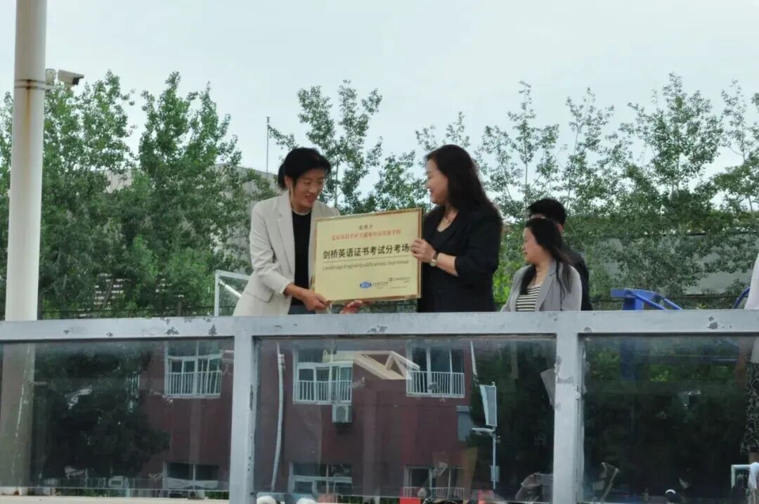 在全体师生的共同见证下,北京教育评估院剑桥考试中心任主任正式将“剑桥英语证书考试分考场”牌匾授予我校,李辉校长代表学校接牌。
