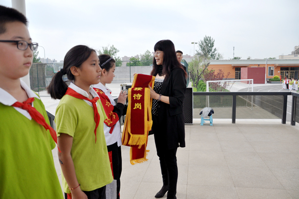 “红领巾接待岗”的开设达到了让全校同学树立主人翁的意识的目的,收到了“我参与,我快乐,我建议,我自豪。”的显著效果。
