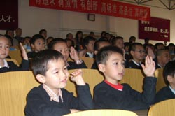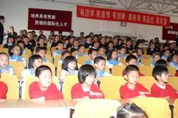 2008年4月16、17日两天上午,小学部组织了学前班开放课活动。到校的学生家长超过两百人,加上上课学生,学校多功能厅已经显得拥挤,一部分家长只能坐在临时加的小椅子上。但这并没有影响家长参与的热情,相反,家长们不仅活动中认真的听了奥数思维训练课、英语课及校长关于“什么样的教育才是好的教育”为主要内容的讲话,而且活动后相当一部分家长留下来继续探讨教育的话题。这样的家校活动小学部每学期都要搞,每一次都能让更多的家长对教育的真谛有进一步的理解。