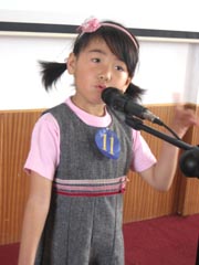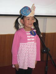 比赛现场的气氛紧张而又热烈,每个选手都很认真,很投入。一个个生动的故事在他们的讲述中更加活灵活现。《美丽的碗》、《小猪的礼物》、《铅笔和橡皮》、《星星银元》……光听听名字都很吸引人吧?这场比赛中唯一的男选手1.1班的安鹏辰,把《称象》这样一个家喻户晓的故事讲的津津乐道,观众席中不时发出会心的笑声,1.3的刘可为不但个子小,年龄也是选手中最小的一个,她讲的故事《猎豹和太阳》也给在场的同学留下了深刻的印象。1.2苏莫凡,一个可爱的小姑娘,讲述了一个可爱的故事《树上都是蘑菇》,现场所有评为都被她栩栩如生的表演深深的吸引住了,最后她以94.83分的好成绩获得第一名。知识问答环节选手和现场的小观众也表现的十分出色,台上台下欢声不断,漂亮的小礼物也在孩子们手中传递。
