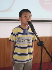 “百日读书”活动最吸引人的读书大王比赛在今天拉开了帷幕。首先进行角逐的是1、2年级小同学,他们的比赛主题是“讲故事比赛”。每班通过班级内部初选,派出两名最优秀的选手来参加比赛。选手需要在现场完成讲故事和现场知识问答两个环节。讲故事,需要选手能够有表情,有动作的讲述故事内容,能够运用较恰当的语气和语速来完成,考验的是孩子们平时阅读的语感和对文章内容的理解与适当的表达;而现场知识问答环节是对学生阅读知识面的考察。两项环节都采用现场打分的方式进行评判。